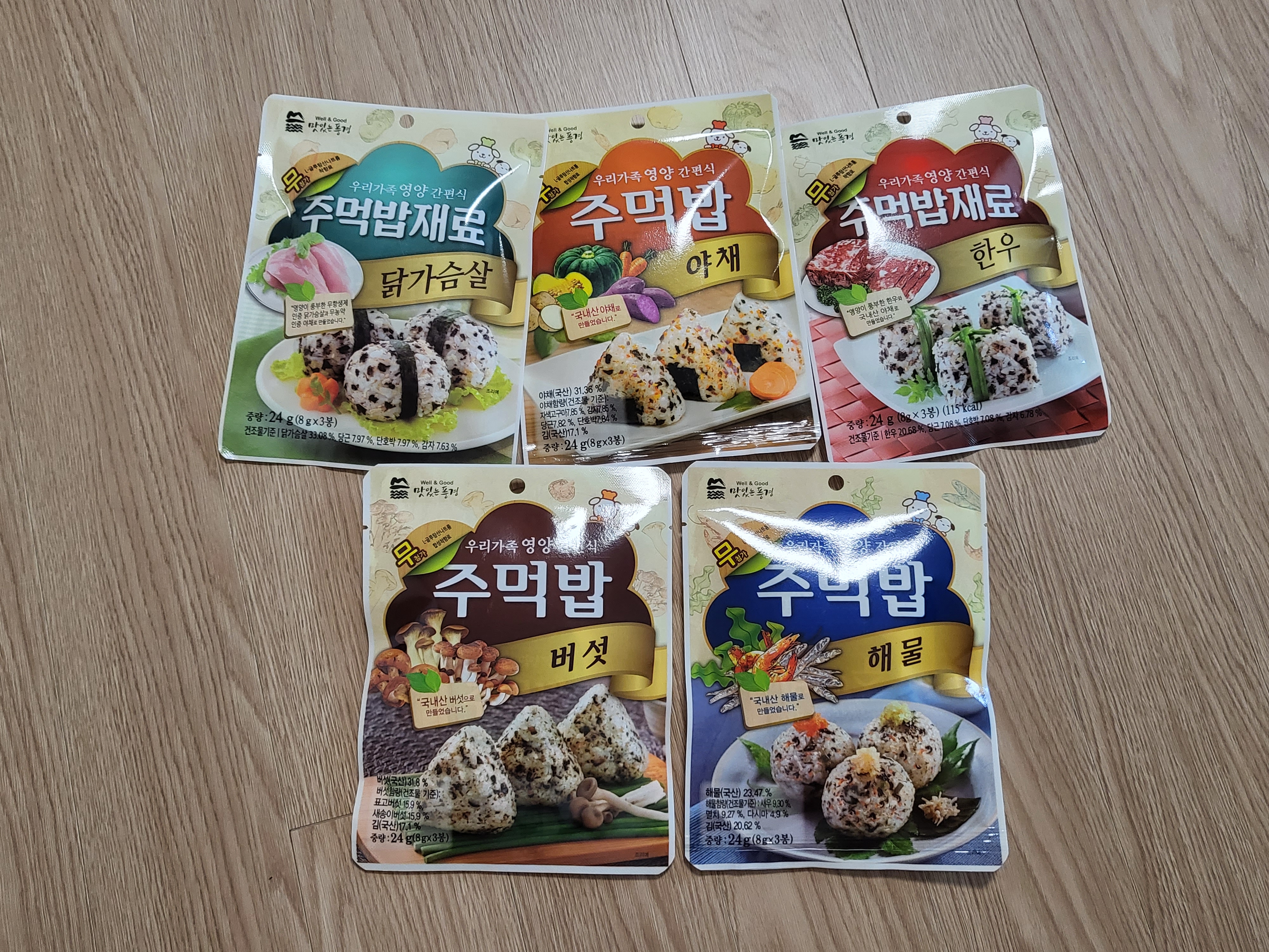 버섯, 야채, 닭가슴살, 한우, 해물 등 다양한 맛으로 판매를 하니 주먹밥만 먹어도 안 질릴 거 같네요.